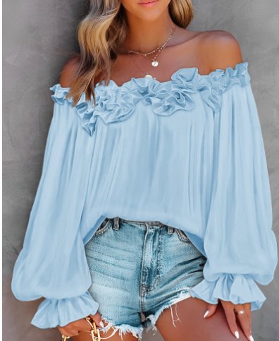 Blusas casuales con hombros descubiertos, manga larga, estilo hoja de loto, corte holgado.